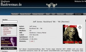 JEFF JONES -Rockhard ’86-’96 in Musiikreviews “…classic melodic metal…always reflecting compositional mastery..”